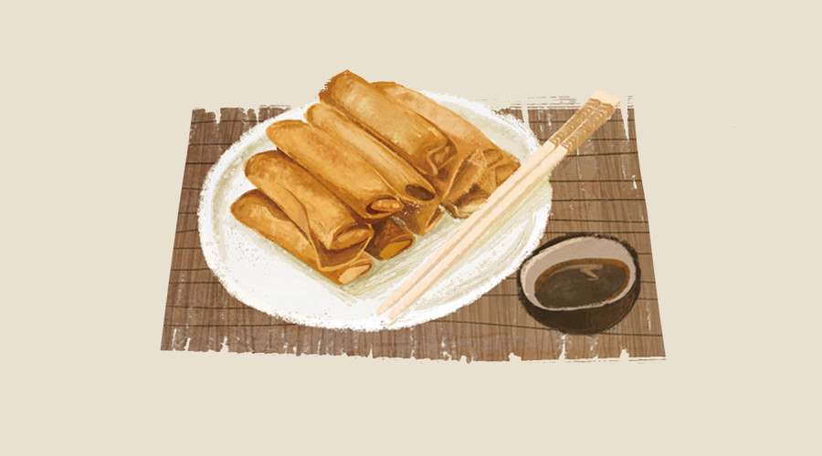 红白萝卜、莴笋、绿豆芽、粉条、熟鸡肉丝做法:生红白萝卜,莴笋切成细丝,加沸水焯熟的绿豆芽,再加入煮熟的银丝粉条。码盐加味精拌匀,熟鸡丝按需混拌,裹进春卷皮中。配合加芥末的蘸汁食用,也可炸熟后食用。